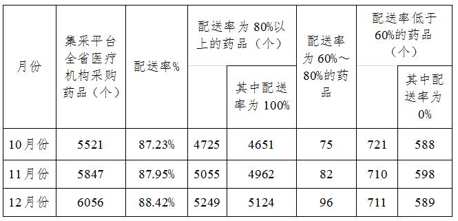 为进一步压实集采(挂网)药品生产企业供应保障的主体责任,确保医疗机构临床使用需求,督促配送企业及时响应医疗机构采购订单,提高配送时效,及时处理医疗机构反映的供应配送问题,对无法及时满足医疗机构采购需求、不按协议供应的医药企业,依据相关管理规定给予相应信用评价,现就关于全省第四季度配送药品情况进行通报如下。